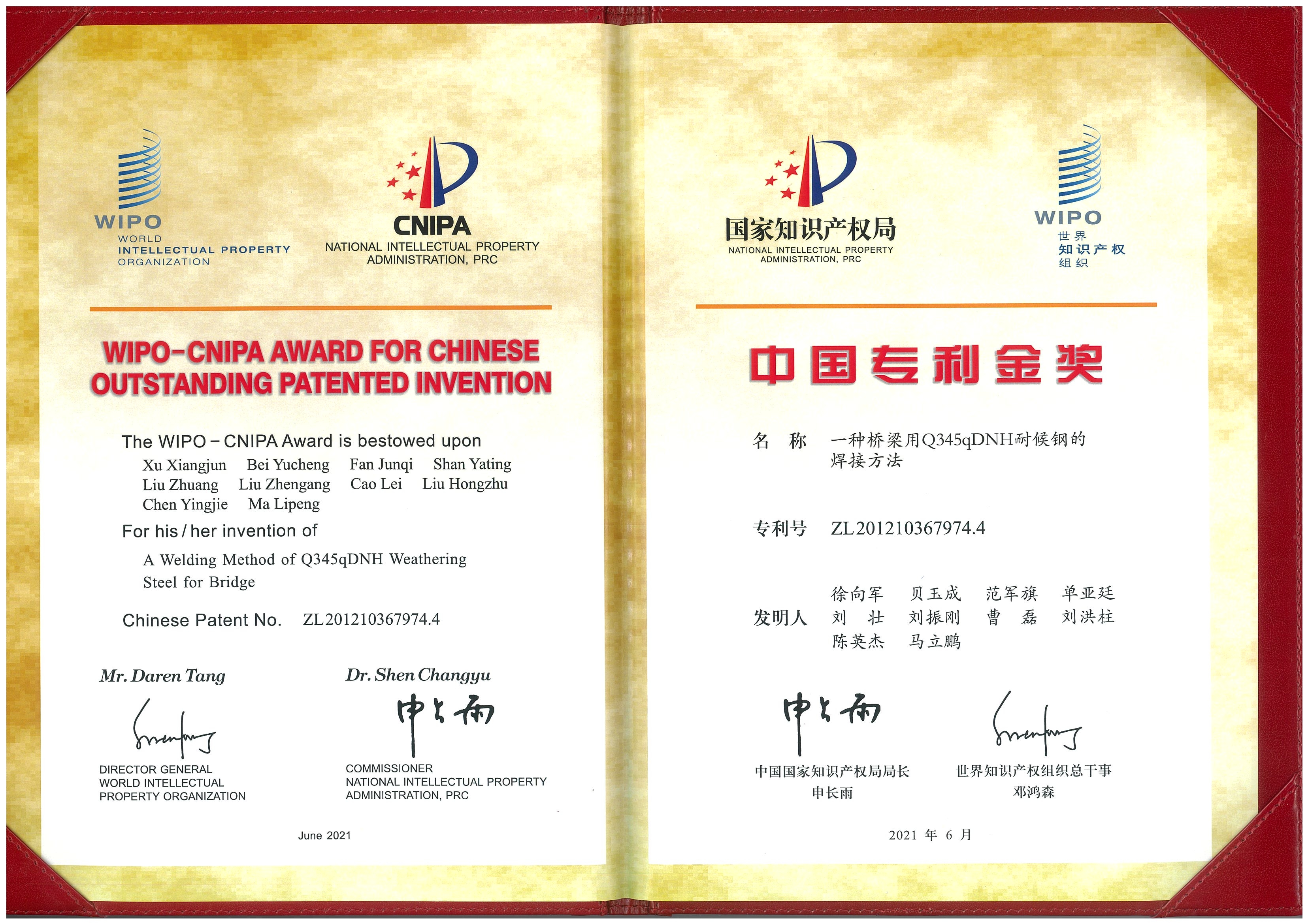 中国中铁深入学习贯彻习近平总书记关于知识产权工作重要指示论述,全面落实国家知识产权战略,认真落实党中央、国务院关于建设知识产权强国的决策,把知识产权作为实现企业高质量发展的重要途径,通过完善知识产权体制机制、培育高价值专利、促进专利运营、强化知识产权保护,不断提升企业知识产权创造、运用、保护、管理能力,更好地发挥知识产权对创新发展的支撑作用,助力企业实现高质量发展。截至2025底,中国中铁拥有专利48029项,其中发明专利15725项,海外专利1078项,获中国专利奖45项,其中金奖3项、银奖3项、优秀奖39项;拥有国家级工法166项 ,省部级工法8574项。