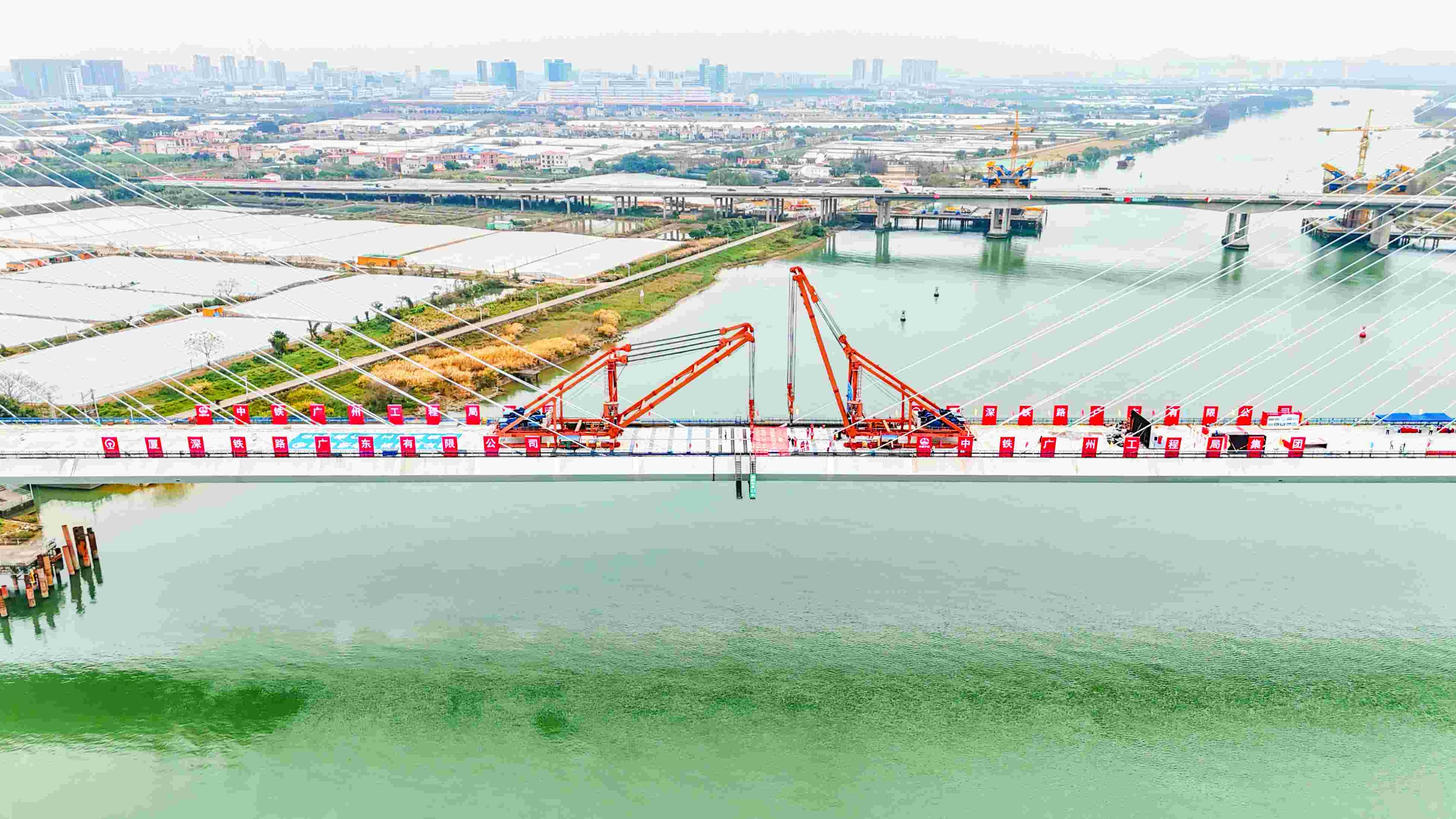 2月10日,随着一段长6米、宽17米、重约72吨的钢梁吊装就位,中国中铁旗下中铁广州局承建、中铁工业参建的国内首座大跨度双边主梁混合组合梁高速铁路斜拉桥——新建深圳至江门铁路(简称深江铁路)广中江特大桥跨鸡鸦水道主桥合龙。