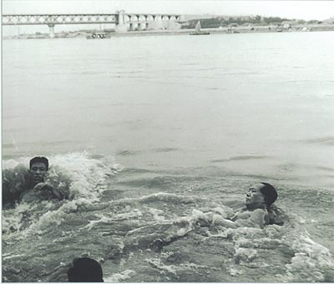 毛主席在武汉长江大桥附近的江中游泳