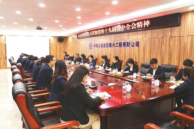 11月3日,中铁九局六公司本部召开党员大会,认真学习贯彻五中全会精神,对全公司学习宣传贯彻工作作出安排,要求各项目党支部书记带头宣传宣讲,在全公司掀起学习贯彻全会精神热潮。